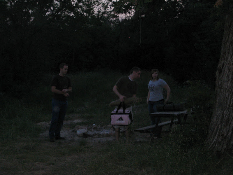 So anyways, we went camping...and you guessed it, with Sean's family!!! We love Lexi and Jordan, and are SO GLAD they moved to Texas. It's been fun to be able to get to know them better, and the more we know...the more we like! Sean and Jordan are like twins, it's pretty weird. Before we bought our house we were in Aunt Marlys and Uncle Del's ward. A month wouldn't go by without someone mistaking Sean for Jordan, and Jordan didn't even live in Texas. It got even more confusing when Jordan and Lexi moved here. The funny part is Sean looks nothing like a Packard, he looks just like his Mom. Jordan is the same way, no Packard-all Lott. So even though they're cousins, they look like they could be brothers...so weird. Since they've moved to Texas I've even noticed some funny things that Jordan does just like Sean, and vice-versa. After we moved out of the ward with the Lotts, Jordan took over Sean's primary class, and apparently kids call him Brother Packard all the time...so funny.